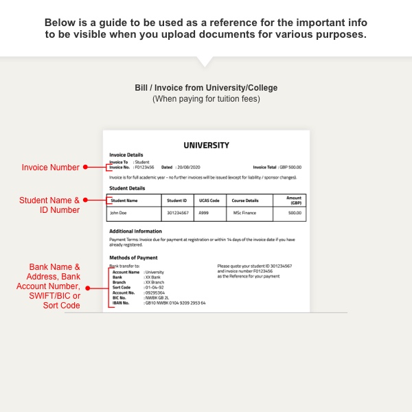 You would be able to find this information in the invoice/billing for fees issued by the university/college to which you are paying. This document will also be uploaded as a supporting document. Click here to view a sample.