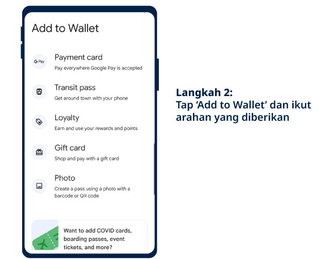 Ketik "Add to Wallet" dan ikut arahan langkah demi langkah yang diberikan.